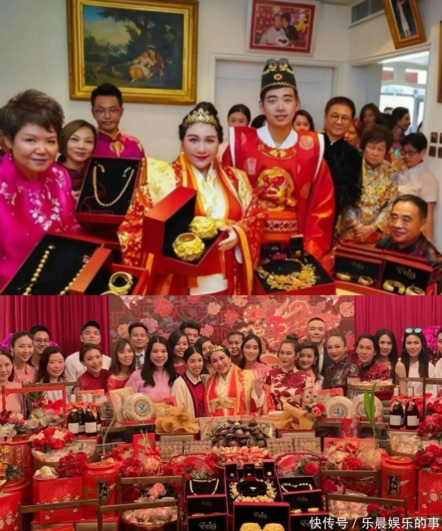 这是何超盈,也就是何猷君的姐姐结婚时候的嫁妆,非常丰厚豪华,黄金迷人眼啊。